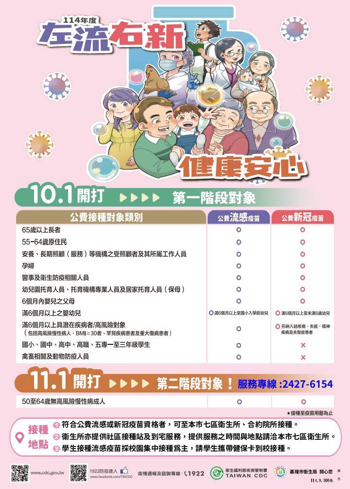 相關消息 2024-06-04 (週二) PPV23價肺鏈已用罄 2022-12-08 (週四) 指揮中心宣布自12月10日起調整醫院探病者篩檢措施 2022-04-11 (週一) 中央及嘉義市府為鼓勵65歲以上長者尚未接種新冠疫苗者~商品卡延長至5月底喔!! 2023-12-11 (週一) 辦理衛生福利部「全民健康保險住院整合照護服務試辦計畫」說明 2022-10-27 (週四) 青少年新冠疫苗開放預約接種囉!!詳情請點入詳閱 2022-04-02 (週六) 新冠疫苗好康禮卷~~嘉義市加碼送!! 2023-10-09 (週一) 10月11日起 Covid-19 XBB.1.5第三階段開打,6個月以上民眾皆可接種 2022-09-11 (週日) 國內新增4例本土登革熱病例,均與高雄市前鎮區群聚相關,請民眾有疑似症狀儘速就醫,並請醫療院所提高警覺 2022-02-24 (週四) 3月1日起調整醫院探病管理措施,北北桃高以外縣市醫院有條件開放探病 2023-09-26 (週二) 自9月26日起莫德納XBB.1.5疫苗第一階段開打,65歲以上長者接種贈送500元禮券及快篩試劑 2022-01-25 (週二) COVID-19公費疫苗平臺第21期自1月26日起,提供已完整接種兩劑COVID-19疫苗滿12週且滿18歲以上民眾預約 2023-09-22 (週五) 自9月26日起首週優先提供65歲以上民眾接種莫德納XBB.1.5疫苗,以提升免疫保護力,降低重症及死亡風險 2023-05-24 (週三) 即日起 「65歲以上長者接種基礎劑、基礎加強劑、第一次追加劑」COVID-19疫苗 贈送500元禮券+4劑家用抗原快篩試 2022-06-21 (週二) Molnupiravir醫療院所領用流程 2025-10-06 (週一) 前進社區~守護你我健康的好厝邊 2023-05-01 (週一) 接種新冠疫苗,免掛號費喔!! 2025-06-11 (週三) 炎炎夏熱~教你預防熱傷害 2023-03-23 (週四) 輕症免隔離~就醫流程建議表 2022-04-22 (週五) 因應疫情嚴峻~依照中央指揮中心公告調整會客須知 2024-10-10 (週四) 流感+COVID開打囉~左流右新健康安心!! 2022-12-23 (週五) 盧亞人醫院 2023年春節門診~實體/視訊門診時段通知 2022-05-02 (週一) 6~11歲兒童疫苗開打囉!! 2024-05-29 (週三) 公費PPV23價肺炎鏈球菌疫苗--6/4(二)到貨 2022-11-02 (週三) 愛滋自我篩檢校園推廣活動自即日起開跑,免費送試劑電子兌換券! 2022-04-09 (週六) 中央為鼓勵65歲以上長者尚未接種新冠疫苗者~商品卡延長至5月底喔!! 2023-11-23 (週四) 即日起 Covid-19 XBB.1.5 隨到隨打 2022-10-07 (週五) 莫德納次世代疫苗,10/11起開放18~49歲一般民眾可接種!!! 2022-03-09 (週三) 施打新冠疫苗,領好康商品禮卷喔!!領取資格~~請詳閱內文 2023-09-27 (週三) 10月2日起分2階段開放民眾施打公費流感疫苗,以及分3階段施打65歲以上長者肺炎鏈球菌疫苗 2021-09-04 (週四) 公費流感疫苗將開打 可以跟新冠疫苗同時打嗎?打流感疫苗有什麼好處?有何限制? 2022-09-12 (週一) 快篩陽性怎麼辦? 2022-02-07 (週一) COVID-19公費疫苗平臺第22期自2月9日起,開放已完整接種兩劑COVID-19疫苗滿12週且滿18歲以上民眾預約接 2023-09-25 (週一) 預防登革熱,落實「巡、倒、清、刷」 2022-07-28 (週四) 安心騎乘審驗合格電動自行車 2022-01-24 (週一) 全國醫院即日起除例外情形,停止開放探病,並調整住院病人、陪(探)病者及醫療照護人員篩檢及疫苗接種等相關規定 2022-07-01 (週五) 施打新冠疫苗,領好康商品禮卷延長囉!!領取資格~~請詳閱內文 2023-05-19 (週五) 一起防疫~腸病毒遠離 2022-05-13 (週五) 公費口服抗病毒藥物~外院處方箋領取流程 2025-10-06 (週一) 開打囉~左流右新健康安心!! 2023-03-27 (週一) 嘉義市再加碼送好禮 50歲以上市民接種COVID-19疫苗 贈送500元禮券+4劑家用抗原快篩試劑 2022-05-09 (週一) COVID-19確診居家照護,居家隔離、居家檢疫、自主防疫期間快篩陽性或有症狀需就醫者,視訊診療相關流程 2025-06-11 (週三) 無檳醫院 開打囉~左流右新健康安心!! 免預約~歡迎符合資格者,於門診時間 週一~週五上午09:00~12:00;下午14:00~1700 ※到本院施打免收掛號費※免預約~歡迎符合資格者,於門診時間週一~週五上午09:00~12:00;下午14:00~1700無法選擇廠牌,全看衛生局分配,領回什麼打什麼,目前院內備有GSK葛蘭素,數量有限喔!!